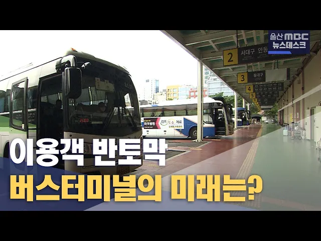 ◀ 앵 커 ▶울산시외버스터미널과 고속버스터미널 이용객이 해가 갈수록 줄어들고 있습니다.버스 회사뿐 아니라 버스터미널 운영사까지 적자난에 시달리고 있지만 뾰족한 대책이 없는 실정입니다.이용주 기자가 보도합니다.◀ 리포트 ▶지난 2001년 준공한 울산고속버스터미널.도심 백화점과 호텔 바로 옆 노른자위 땅에 위치해...