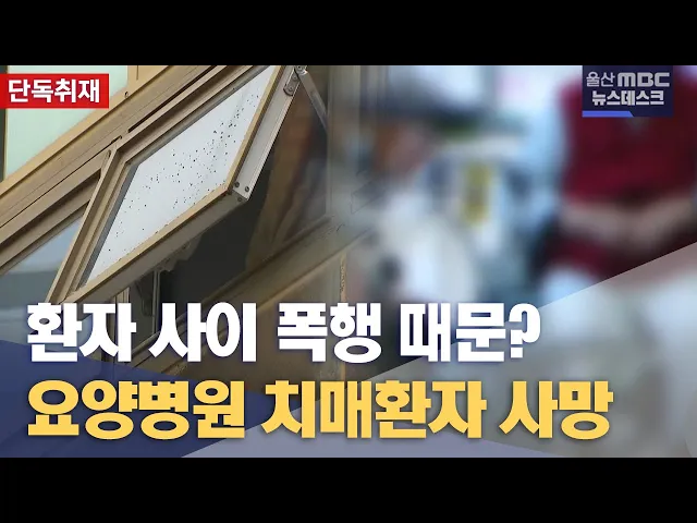 [앵커] 요양병원에서 치료를 받던 치매환자가 다른 환자를 살해하는 사건이 잇따르고 있습니다. 울산의 한 요양병원에서 80대 중증 치매환자가 다른 환자를 때려 숨지게 한 것으로 의심되는 사건이 발생해 경찰이 수사를 벌이고 있습니다. 이다은 기자가 단독 보도입니다. [리포트] 울산의 한 요양병원. 새벽 2시30분쯤 80...