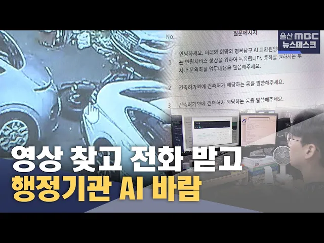 [앵커]인공지능, AI 기술이 날로 발전하면서 울산지역 행정기관에도 신기술이 속속 도입되고 있습니다. CCTV 영상을 단숨에 분석하고, 주민 민원 전화를 응대하거나 공문 초안 작성에도 활용된다고 합니다. 이용주 기자가 보도합니다. [리포트]울산 동구의 한 도로. 승합차 한 대가 길가에 주차된 오토바이를 들이받아 넘어...