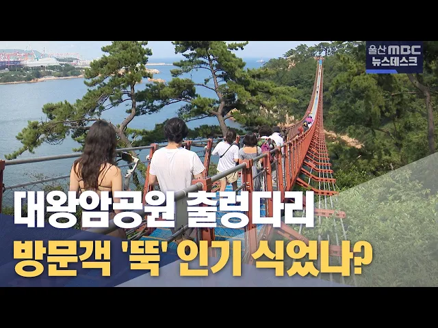 [앵커]지난해 관광객이 가장 많이 찾은 울산의 관광지는 대왕암공원이었는데요. 출렁다리 개장에 힘입어 관광객이 부쩍 늘었지만, 1년만에 개장 효과가 떨어지며 대왕암공원 관광객이 올해는 절반 수준으로 급감하고 있습니다. 정인곤 기자입니다. [리포트]울산 대표 관광지인 대왕암공원. 이 곳의 명물인 출렁다리는 평일...