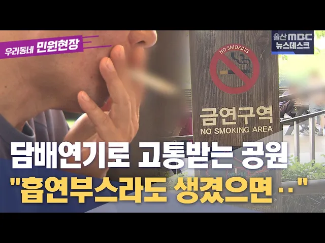 [앵커] 지역 주민들의 생활 불편과 민원을 보다 책임감 있게 처리하기 위해 시·구·군의원들과 함께 해결책을 찾아보는 우리동네 민원현장입니다. 울산시민들이 많이 찾는 선암호수공원이 흡연자들의 담배연기로 몸살을 앓고 있다고 합니다. 해결책은 없는지 민원 현장에 다녀왔습니다. [리포트][박영수 / 울산 남구의회 의...