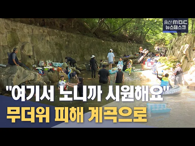 [앵커] 전국이 가마솥 더위로 펄펄 끓고 있는 가운데 울산도 지난달 27일부터 8(9)일째 폭염경보가 이어지고 있습니다. 폭염에 여름 휴가철까지 겹쳐 물놀이 명소인 인근 계곡은 무더위를 피해 찾아온 피서객들로 북적이고 있습니다. 정인곤 기자입니다.[리포트] 무더위가 절정에 이른 낮시간. 계곡에는 더위를 피해 모여든...
