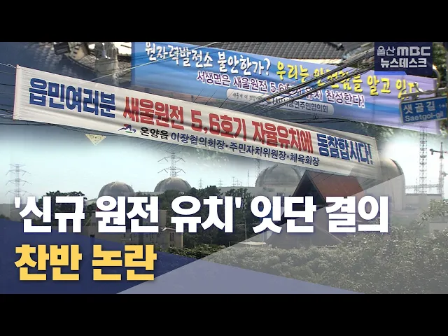 [앵커] 정부가 안정적인 전력 공급을 위해 원전 6기를 추가로 짓는 계획을 검토하고 있습니다. 그런데 계획이 확정되기도 전에 벌써부터 울산 서생면주민협의회에 이어 이장단협의회도 신규 원전을 유치하겠다고 나서 일방적 추진이라는 논란이 일고 있습니다. 홍상순 기잡니다. [리포트] 새울원전이 있는 울산 울주군 서생...