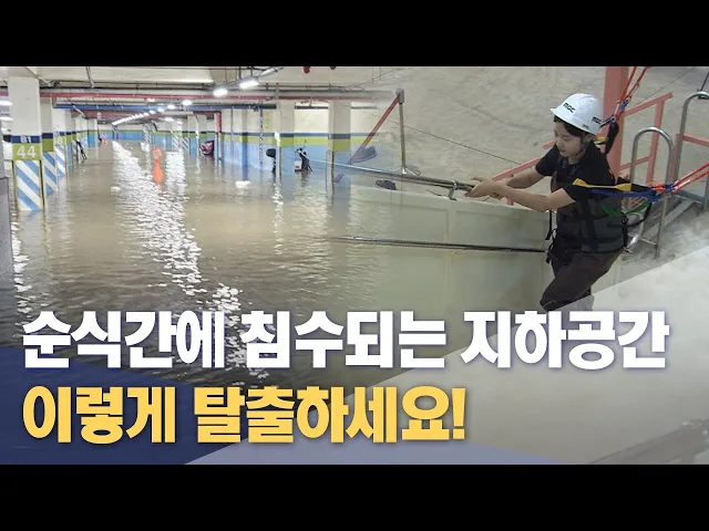 [앵커] 집중호우가 내릴 때 지하공간은 빗물이 순식간에 차올라 아주 위험합니다. 탈출을 위한 골든타임과 방법을 잘 익혀둬야 하는데요. 이런 상황에서 수압이 얼마나 강한지, 그리고 어떻게 대처해야 하는지 이다은 기자가 실험해봤습니다. [리포트] 아파트 지상주차장에 물이 가득 찼습니다. 인근에 둑이 터지면서 물이 ...