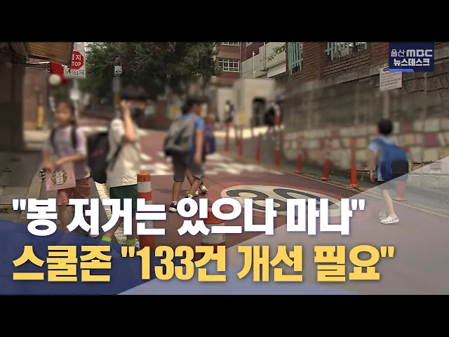 [앵커] 울산시가 어린이 보호구역을 전수 조사했더니 개선해야 할 곳 133건이 발견됐습니다. 최근 어린이보호구역에서 잇따라 사고가 발생하면서 사고 위험을 우려하는 목소리도 높아지고 있는데요. 개선이 필요한 어린이보호구역에 이다은 기자가 다녀왔습니다. [리포트] 울산 남구의 한 초등학교 하굣길. 학생들이 차량과...