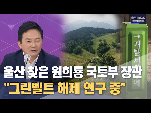 [앵커] 원희룡 국토교통부 장관이 도심융합특구 지원방안을 논의하기 위해 울산시청을 찾았습니다. 김두겸 울산시장이 건의한 그린벨트 해제 권한 조정과 관련해 원 장관은 울산의 상황을 잘 알고 있다며 뒷받침할 방안을 연구하고 있다고 설명했습니다. 이용주 기자입니다. [리포트]지난해 12월, 울산 울주군 KTX역세권과 ...
