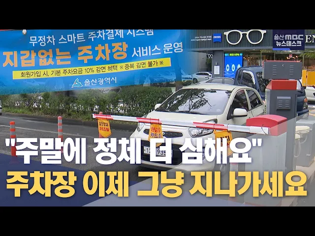 [앵커] 오늘(6/26)부터 울산지역 일부 공영주차장에서 자동 결제가 가능한 지갑없는 주차장 서비스가 시행됐습니다. 앞으로는 울산의 모든 공영주차장에서 출차시 차를 세우고 결제하는 불편함이 사라질 전망입니다. 정인곤 기자입니다. [리포트] 평일에도 빈자리는 찾아보기 힘든 울산 남구의 한 공영주차장. 주차장을 빠...