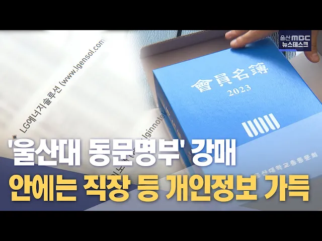 [앵커] 울산의 한 대학교 총동문회가 졸업생 수천명에게 동문 명부를 사라고 강매해 물의를 빚고 있습니다. 주문하지도 않은 책값을 내라는 요구도 황당한데, 명부에는 휴대전화 번호에 직장 이름까지 민감한 개인정보가 가득했습니다. 정인곤 기자입니다.[리포트] 지난 4월 황당한 택배를 받은 이 모 씨. 울산대학교 총동...