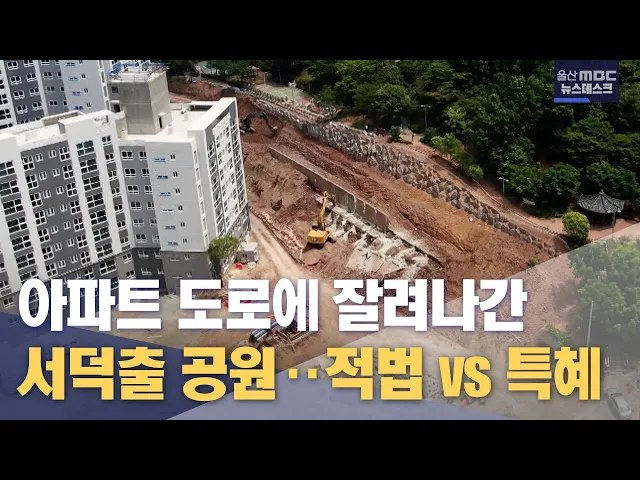 [앵커] 울산의 한 주택조합이 아파트 단지 내부 도로를 개설하면서 서덕출 공원을 침범해 공원 가용면적이 상당히 줄어든 것으로 나타났습니다. 울산 중구청은 적법한 절차라고 해명에 나섰지만 환경운동단체는 주택조합에 특혜를 준 것이라며 반발하고 있습니다. 홍상순 기잡니다. [리포트] 울산 중구 복산동의 한 아파트 ...