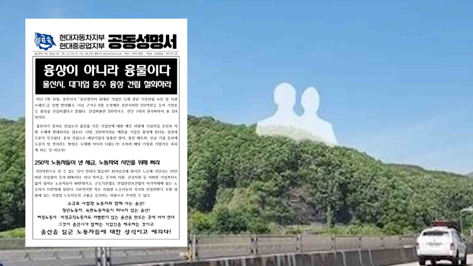 한편 현대자동차 노조와 HD 현대중공업 노조는 오늘(6/13) 공동 성명을 내고 울산시가 추진하는 기업인 흉상 건립에 반대 입장을 밝혔습니다. 두 노조는 흉상 건립이 해당 기업 탈울산 방지와 울산 재투자, 신규 유치에 도움이 된다는 발상은 어디서 나온거냐며 노동자들이 낸 세금을 노동자와 시민을 위해 쓰라고 강조했습...