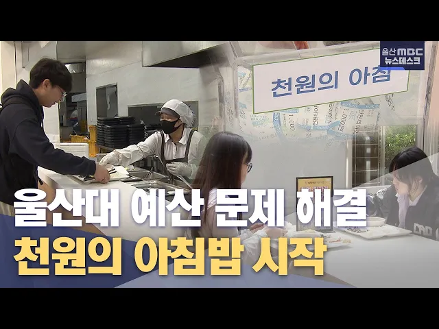 [앵커] 고물가 속 대학생들이 구내 식당에서 천 원만 내고 아침을 사 먹는 사업이 전국에서 호응을 얻고 있는데요. 그동안 울산대학교는 예산 문제로 사업에 참여하지 못했습니다. 이 소식을 들은 대학 총동문회와 교직원들이 학교 대신 예산을 부담하기로 하면서 천원의 아침밥이 시작됐습니다. 정인곤 기자가 다녀왔습니...