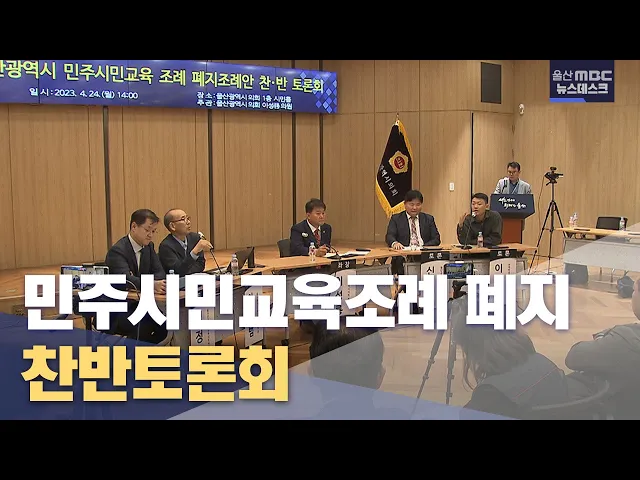 [앵커] 시민을 대상으로 하는 민주시민교육조례 폐지를 두고 진보와 보수 진영간에 논란이 과열되고 있습니다. 보수 진영은 정치 편향성을 띄고 있다며 폐지해야 한다고 주장한 반면 진보 진영은 꼭 필요한 조례라며 반대했습니다. 찬반토론회 내용을 홍상순기자가 전해드립니다. [리포트] 울산시의회 이성룡 의원은 지난달...