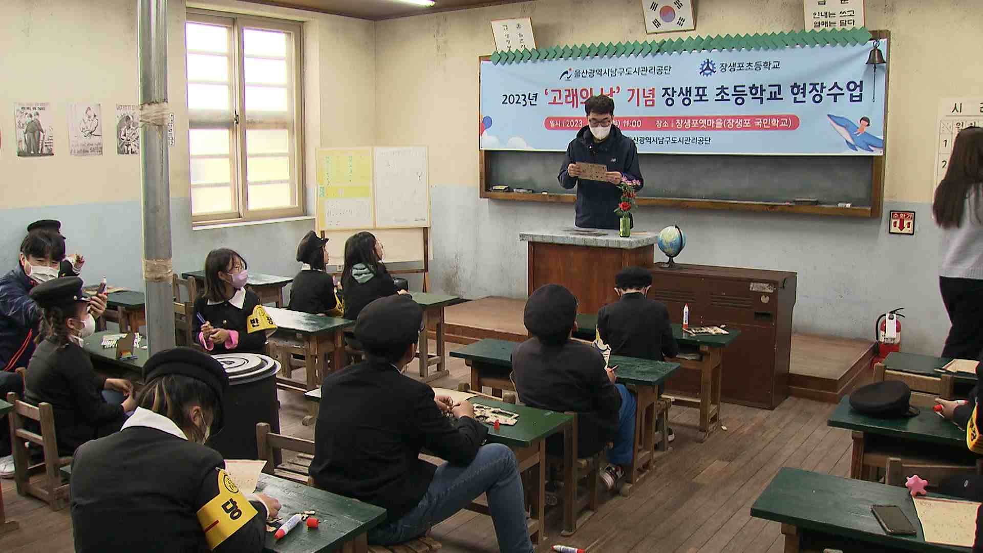 남구가 지정한 고래의 날을 맞아 장생포 초등학교 학생들이 장생포 문화마을에 마련된 60년대 국민학교 교실에서 현장 수업을 진행했습니다. 옛 교복을 입은 학생들은 분필과 칠판, 풍금 등 옛모습을 간직한 교실에서 장생포 지역을 설명하는 수업 시간을 가지며 장생포 고래문화특구를 홍보했습니다.