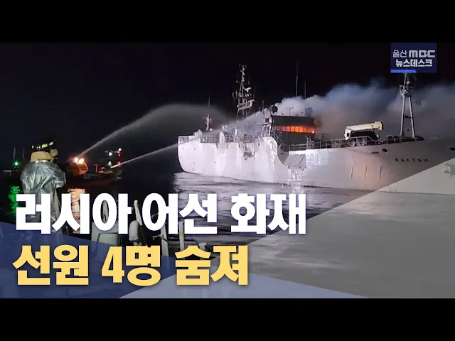 [앵커] 오늘 새벽 한국 해역을 항해하던 러시아 선박에서 불이 나 해경과 군이 강풍 속에서 대대적인 구조와 수색 작업을 벌였습니다. 사고 선박은 불이 꺼지지 않아 항구로 옮겨졌는데 실종됐던 러시아 선원 4명이 모두 숨진 채 발견됐습니다. 정인곤 기자입니다.[리포트] 한 치 앞도 보이지 않는 깜깜한 밤, 해경 화학 방...