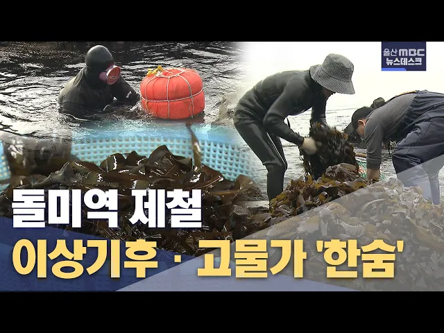 [앵커] 울산 바닷가에서는 제철을 맞은 대표 특산품인 돌미역 채취가 한창입니다. 하지만 이상기후와 고물가로 상황이 예전만 하지는 못하다고 합니다. 정인곤 기자가 돌미역 채취 현장에 다녀왔습니다. [리포트] 해가 막 떠오른 이른 아침 바닷가. 해녀들이 낫 한자루를 들고 차가운 바닷속으로 들어가더니 금새 미역 한다...