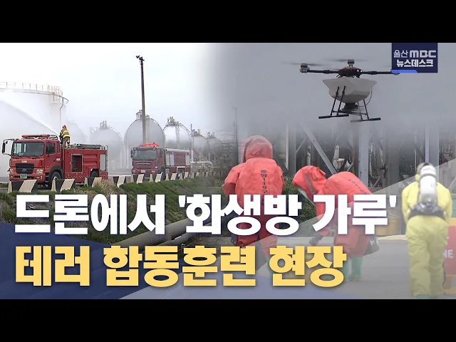 [앵커]소형 무인기, 드론을 이용한 테러 사건이 잇따르는 가운데 전국 최대 화약고로 불리는 울산 석유화학단지도 표적이 될 수 있다는 위기감이 높아지고 있는데요. 이같은 드론 테러에 실전처럼 대응하기 위해 국정원과 군, 경찰, 소방이 예행연습 없이 합동훈련을 진행했습니다. 이용주 기자가 다녀왔습니다. [리포트]국...