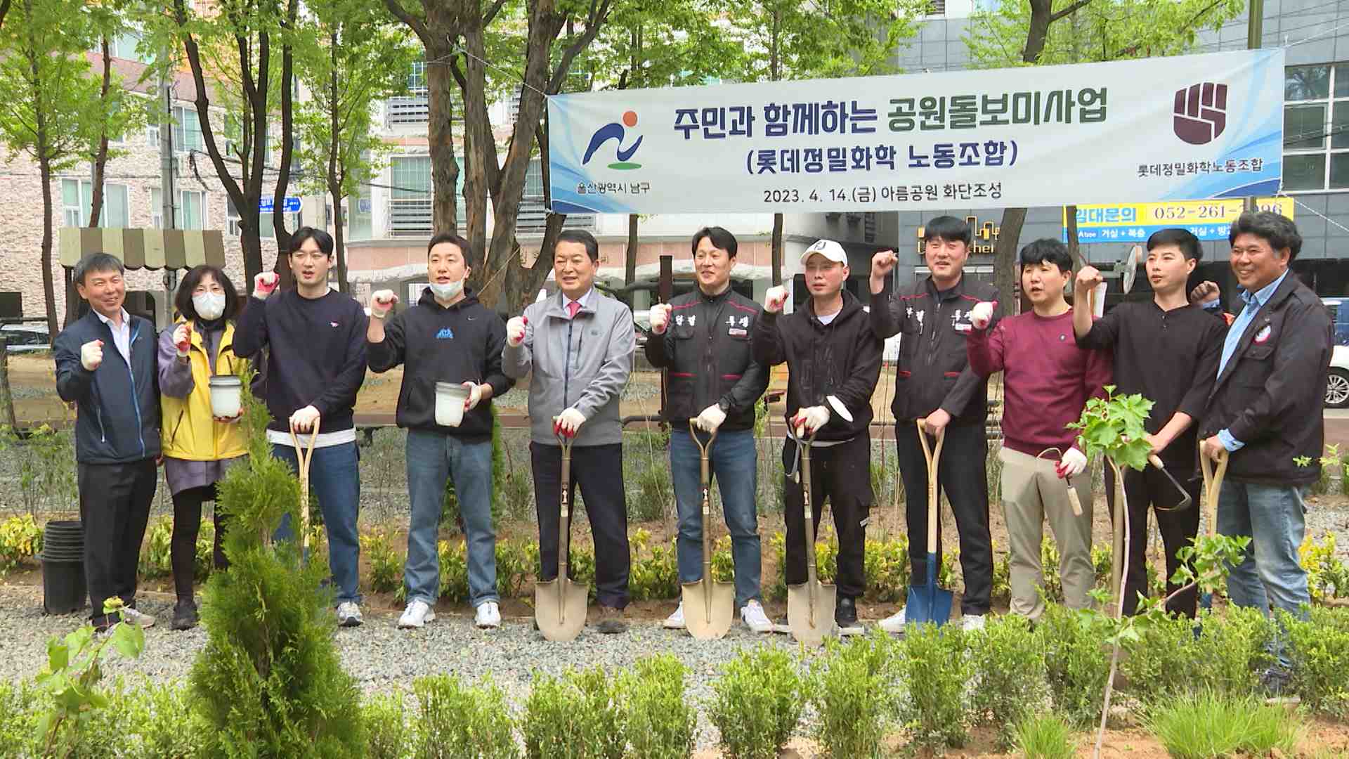 롯데정밀화학 노조가 남구 공원돌보미 사업을 통해 남구 지역 도시공원 가꾸기에 나섰습니다. 노조는 오늘(4/14) 남구청과 협약식을 맺고 삼산동 아름공원에 초화 15종, 1천145본을 식재했습니다. 노조는 앞으로 매년 5백만 원 상당의 기금을 남구청에 전달해 공원 가꾸기 활동에 나선다는 계획입니다.