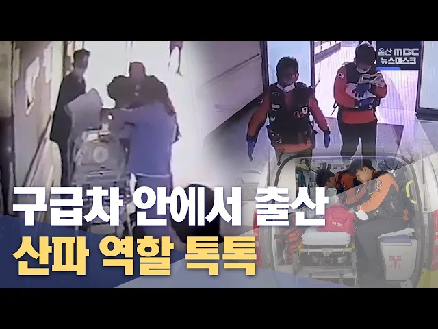 [앵커] 울산 구급대원들의 신속한 대처로 임신부가 구급차 안에서 무사히 새 생명을 출산했습니다. 도시 외곽지역에는 아이를 출산할 수 있는 분만병원이 가까이 없다보니 이처럼 119 구급대원들이 산파 역할을 톡톡히 해내고 있습니다. 이다은 기자입니다. [리포트] 울산의 한 대학병원 응급실 구급대원들이 갓난아기를 안...