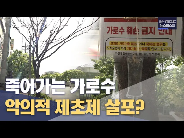 [앵커]울산의 대학가 가로수가 메말라 죽어가고 있어 경찰이 수사에 나섰습니다. 누군가 오랜기간에 거쳐 악의적으로 가로수를 훼손한 것으로 추정됩니다. 정인곤 기자입니다. [리포트]울산 대학로 왕복 8차로 도로. 수령 30년이 넘은 수십 그루의 느티나무가 초록빛을 뽐내며 울창하게 자리잡고 있습니다. 그런데 유독 한 ...