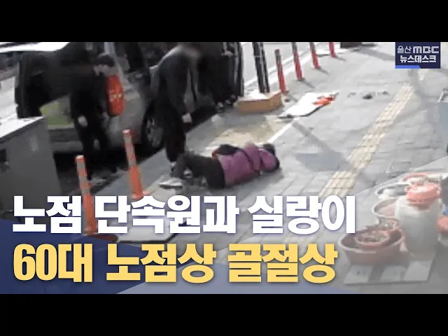 ◀앵커▶ 60대 노점상 상인이 노점 단속원과 실랑이를 벌이던 중 어깨가 골절되는 일이 벌어졌습니다. 상인의 가족은 과잉 단속이었다고 주장하고 있는데, 관할 구청은 정당한 공무집행이라며 강경한 입장이여서 논란이 되고 있습니다. 정인곤 기자 ◀리포트▶ 울산 남구의 한 전통시장. 나물을 파는 노점상 뒤로 승합차가 멈춰...