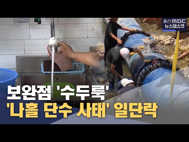 [앵 커]나흘동안 단수 사태를 겪은 울주군 서부 지역에 수돗물 공급이 순차적으로 재개됐습니다. 주말부터 이어진 주민들의 큰 불편이 해소되면서 한숨은 돌렸지만, 누수 사실을 알고도 늦어진 주민 안내와 미비한 단수 대비책 등 많은 과제를 남겼습니다. 정인곤 기자 [리포트]물 틀면 물 나오는 소리 단수로 문을 닫았던 ...