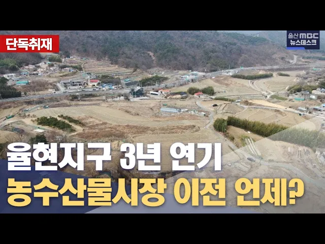 [앵커] 울주군 청량면 율현지구 도시개발사업이 계획보다 3년 정도 늦어진 2029년에 완공될 전망입니다. 이에따라 율현지구로 이전할 울산농수산물도매시장 준공시기도 상당히 늦춰질 것으로 예상됩니다. 홍상순 기자가 단독 보도합니다. [리포트] 울산 울주군 청량면, 율현지구 도시개발사업 예정지입니다. 울산시는 지난 ...