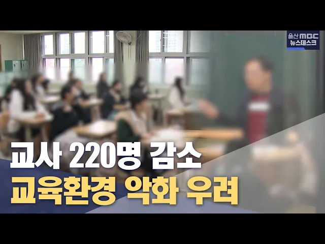 [앵커]올해 울산지역 학생 수는 큰 변화가 없는데 교사 정원은 220여 명이 줄었습니다. 이 때문에 학급당 평균 학생 수가 높아지는 등 교육 환경이 퇴보할 것으로 우려되고 있습니다. 홍상순 기잡니다. [리포트]울산의 한 고등학교입니다. 올해 입학한 신입생이 졸업생보다 75명 더 많은데 교사는 오히려 2명이 줄었습니다....