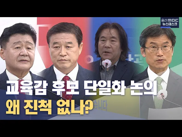 [앵커]오는 4월 울산교육감 보궐선거에 나서는 예비후보 4명 가운데 2명은 보수 성향, 2명은 진보 성향을 갖고 있습니다. 각 진영에서는 성향이 비슷한 후보들끼리 후보 단일화를 해야 선거에서 승리할 수 있다고 목소리를 높이고 있지만 논의는 전혀 진척이 없습니다. 왜 그런지, 각 선거캠프의 셈범을 짚어봤습니다. 홍상...