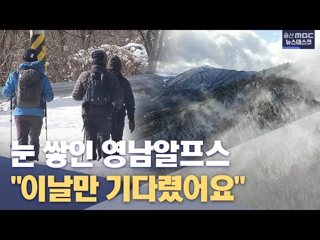 [앵커] 오늘 울산 산간 지역에는 제법 많은 양의 눈이 내렸습니다. 눈 소식을 접한 등산객들은 잠시 일상을 접어두고 영남알프스를 찾아 하얀 눈 세상에서 산행을 즐겼습니다. 정인곤 기자가 현장에 다녀왔습니다. [리포트]온통 새하얗게 변한 영남알프스. 밤사이 10cm의 많은 눈이 내렸습니다. 영남알프스로 향하는 길목은...