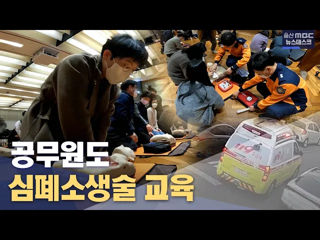 ◀앵커▶ 의사나 간호사 등 의료인이 아니면 일반시민들은 심정지 환자를 대상으로 선뜻 심폐소생술을 실시하는 것이 쉽지 않은데요. 그래서 공무원들이 이런 상황을 만났을 때 용기를 내서 실제 행동으로 옮길 수 있도록 대대적인 심폐소생술 교육이 시작됐습니다. 정인곤 기자 ◀리포트▶ EFF) 하나, 둘, 셋, 넷.. 울산시청 ...