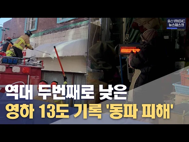 [앵커] 오늘(1/25) 울산지방은 기상 관측 이래 두 번째로 추운 영하 기온을 기록했습니다. 아침 최저 기온이 영하 13도까지 떨어지는 매서운 강추위에 동파 피해가 속출했습니다. 정인곤 기자가 보도합니다. [리포트]물탱크가 터져 얼어붙은 얼음을 소방대가 출동해 조심스럽게 깨고 있습니다. 한 음식점은 수도관 파열로 ...