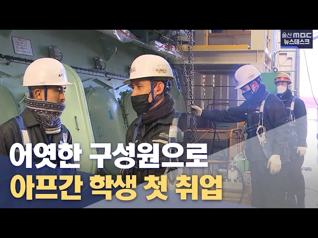 [앵커] 아프가니스탄 특별기여자들이 울산에 정착한 지 벌써 1년이 다 돼 갑니다. 올해초 고등학교를 졸업하고 곧바로 아버지가 일하는 회사에 취업해 사회에 첫발을 내딘 한 청년이 있는데요, 홍상순 기자가 만나봤습니다. [리포트] 선박에 들어가는 대형 엔진을 조립하는 회사입니다. 올해 고등학교를 졸업한 19살 무스타...