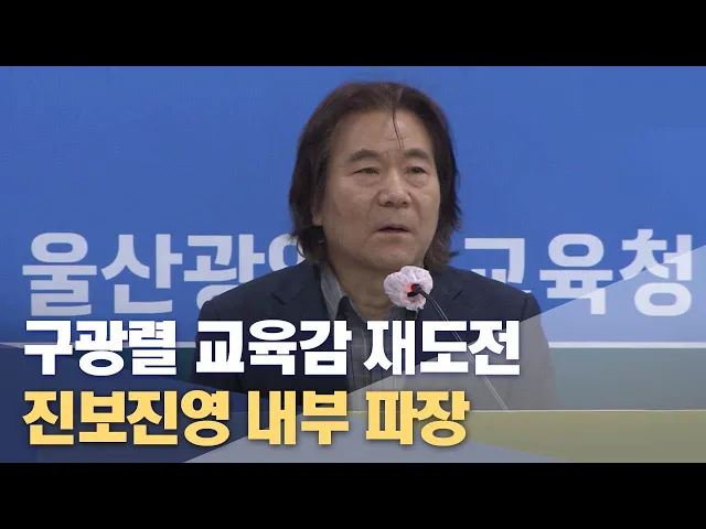[앵커]구광렬 울산대 명예교수가 진보를 표방하며 교육감 선거에 재도전하면서 진보진영 내부에 파장을 일으키고 있습니다. 보수진영과 달리 합의추대가 가능할 것으로 보였던 진보진영은 구 교수가 예상치 못하게 진보 후보를 자처하고 나서면서 진보 성향 표심의 결집력이 떨어지지 않을까 걱정하는 분위기입니다. 홍상순...