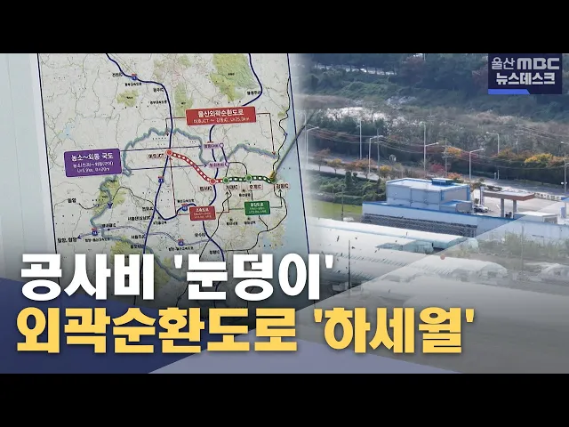 [앵 커 ] 울산의 동서를 연결하는 새로운 교통 연결망으로 기대를 모았던 울산외곽순환도로가 6년째 첫 삽도 뜨지 못하고 있는데요. 사업 지연으로 예상 공사비가 늘어나고, 이 때문에 또 사업이 지연되는 악순환이 반복되면서 2029년을 목표로 했던 완공도 기약 없이 미뤄지고 있습니다. 최지호 기자. [리포트] 울산의 동...