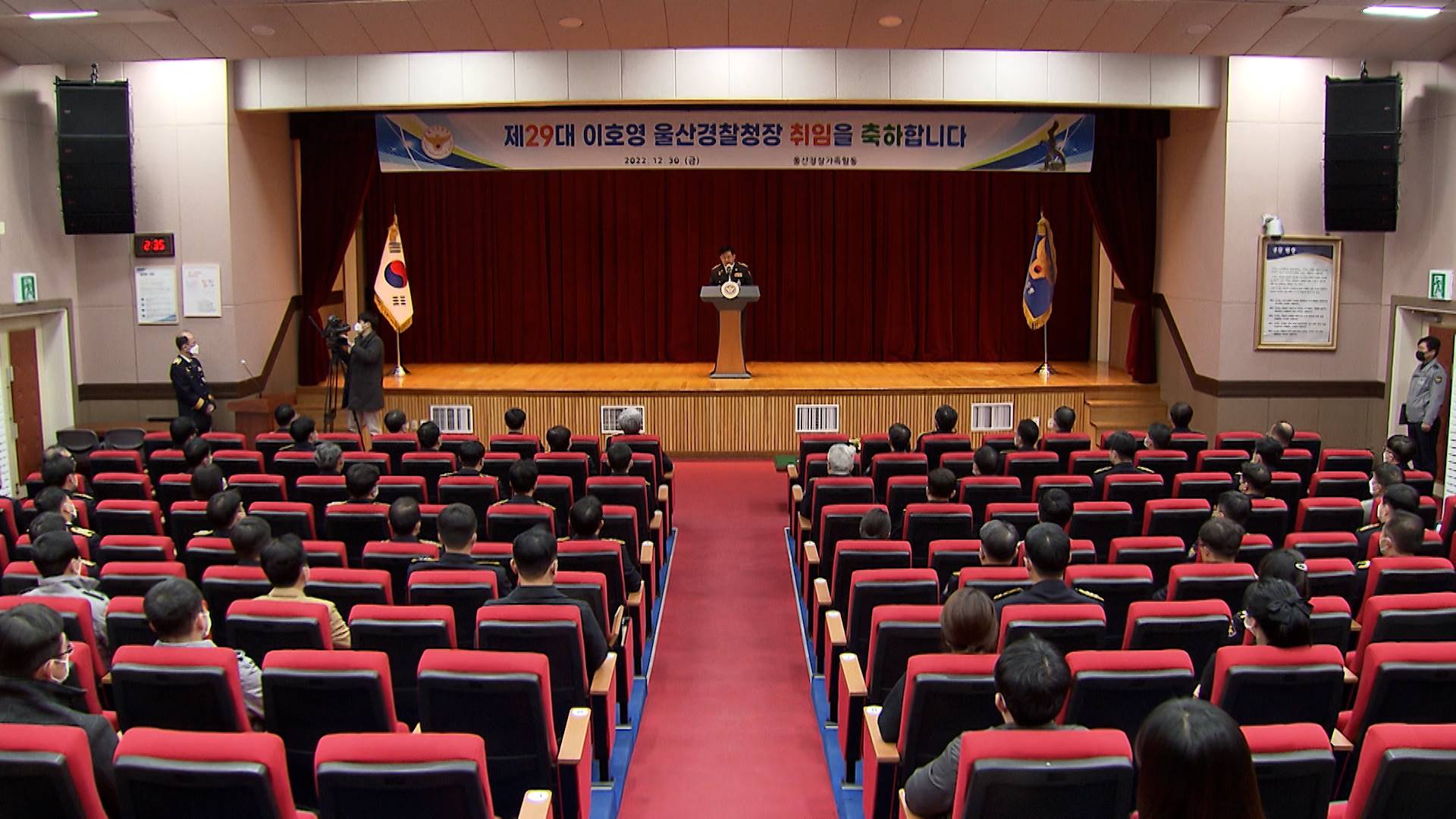 이호영 신임 울산경찰청장의 취임식이 오늘(12/30) 울산경찰청 대강당에서 열렸습니다. 이 청장은 충남 출신으로 동국대 경찰행정학과를 졸업했으며 충남경찰청 세종청사경비대장과 경찰청 경무인사기획관 등을 역임했습니다. 한편 박성주 전 울산경찰청장은 경찰청에 신설된 미래치안정책국장으로 자리를 옮겼습니다.