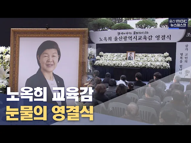 [앵커]고(故) 노옥희 울산시교육감의 영결식이 오늘(12/12) 오전 울산시교육청 중앙광장에서 엄수됐습니다. 이날 영결식에는 유족과 시민사회단체, 학부모와 학생 등 수백 명이 참석해 고인의 마지막 길을 배웅했습니다. 이용주 기자입니다. [리포트]한 명의 아이도 포기하지 않는 교육행정의 무대였던 울산시교육청. 중앙...