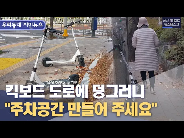 [앵커] 울산MBC와 울산시청자미디어센터의 시민기자가 함께 만드는 시민뉴스입니다. 전동킥보드 이용자가 늘어나면서 울산에도 전동킥보드 주차공간을 확보해달라는 시민 요구가 커지고 있습니다. 박은숙 시민기자입니다. [리포트] 요즘 10~20대 젊은 사람들을 중심으로 이런 전동킥보드를 많이 이용하고 있습니다. 그런데 ...