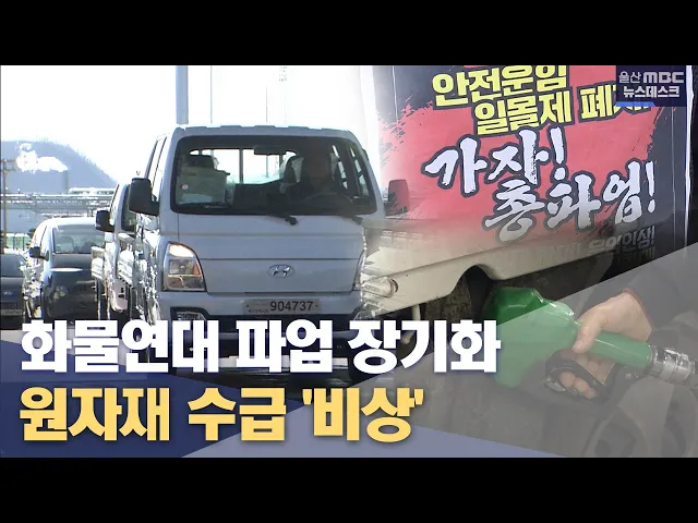 [앵커] 9일째 이어지고 있는 화물연대 파업으로 울산도 물류 이동에 차질이 발생하고 있습니다. 파업이 장기화될수록 지역 건설현장과 정유업계 등으로 원자재 수급 문제가 확산될 전망입니다. 최지호 기자입니다. [리포트] 울산 현대자동차 신차 출고센터. 신호등이 파란불로 바뀌자 임시번호판을 단 차들이 줄지어 출발합...