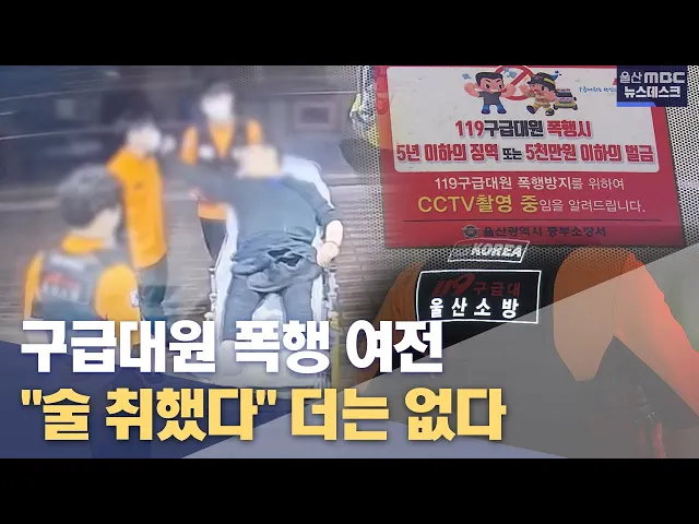 [앵커] 위급 상황에 출동한 구급 대원이 취객에게 폭행당하는 사건이 잇따르면서 올해부터는 음주 등을 이유로 처벌을 감경받을 수 없도록 법이 개정됐는데요. 소방구급대원에게 욕설과 폭행을 한 50대가 징역형을 선고받았습니다. 이용주 기자입니다.[리포트]도로 위에 쓰러져 있다 들것에 실려온 50대 남성이 다짜고짜 구...