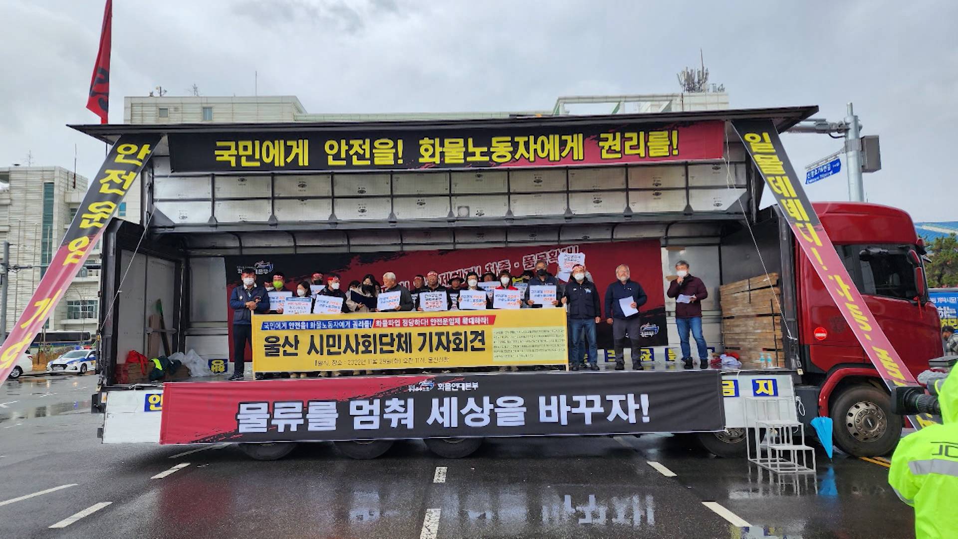 민주노총 화물연대 총파업이 엿새째에 접어든 가운데 울산에서도 화물연대 조합원들의 결의대회가 열렸습니다. 화물연대는 정부의 업무개시명령 발동은 사상 초유의 노동탄업이자 헌법 유린이라며 불의한 정권에 맞서 더 크고 강한 투쟁으로 응대하겠다는 입장을 밝혔습니다. 한편 울산경찰청은 화물연대 파업과 관련해 물...
