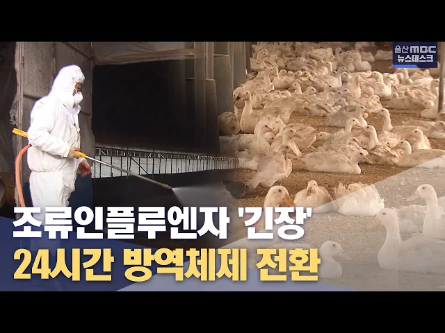 [앵커] 예년보다 한 달여 빨리 발생한 조류인플루엔자 확산세가 심상치 않습니다. 울산은 5년간 청정지역을 유지했지만 인근 경주와 김해에서 조류인플루엔자가 검출되면서 24시간 방역체제로 전환하는 등 방역 강화에 나섰습니다. MBC뉴스 이돈욱입니다. [리포트] 울산을 오가는 축산차량을 대상으로 소독을 실시하고 필증...