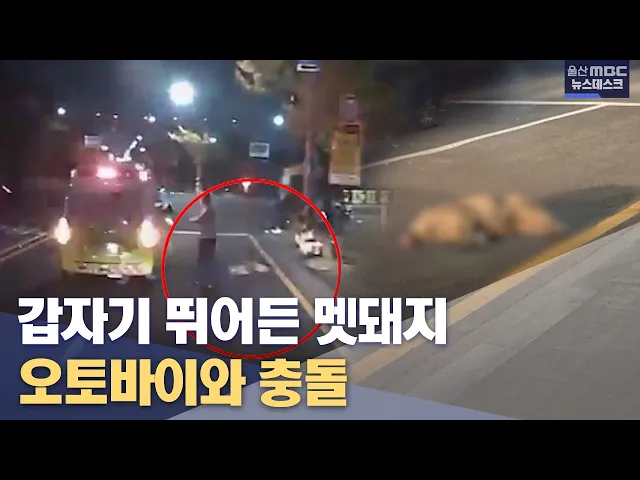 [앵커]오늘 새벽 울산의 한 도로에서 40대 남성이 오토바이를 타고 집으로 퇴근하다 멧돼지와 부딪쳐 부상을 입었습니다. 해마다 겨울철을 앞둔 이맘때 멧돼지 출현이 잦아 주의가 요구되고 있습니다. 이용주 기자입니다. [리포트]캄캄한 어둠 속에서 119 구급차가 바닥에 쓰러져 있는 멧돼지를 지나 길가에 멈춰섭니다. 들...