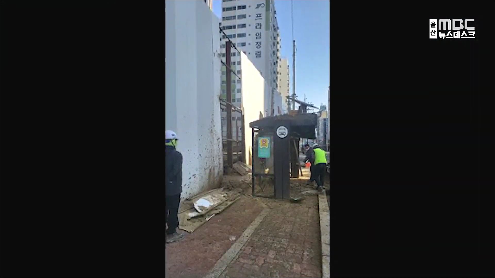 공사 현장 토사 도로 덮쳐.. 버스승강장·차량 파손