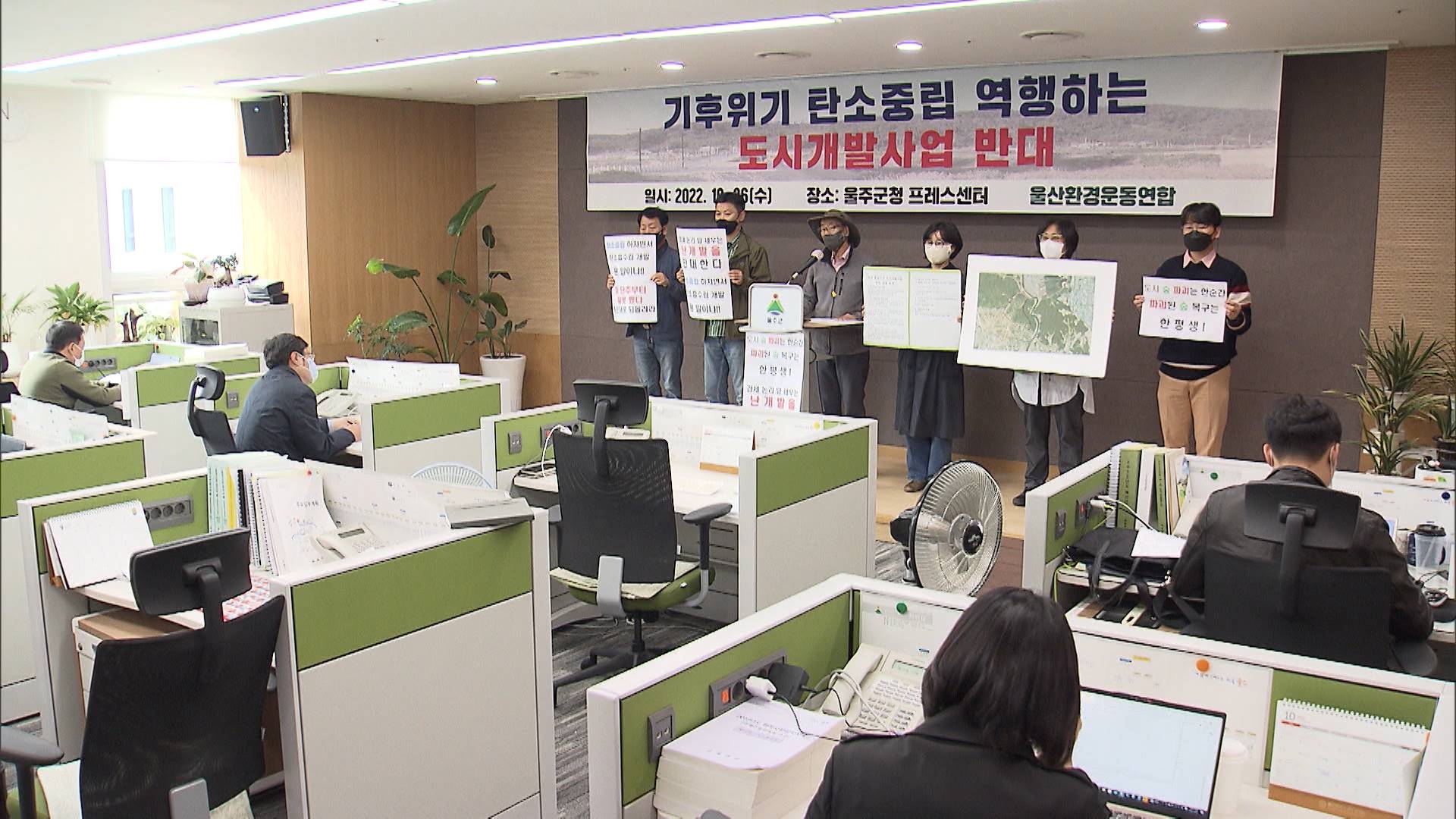 울주군 온양읍 일대 도시개발사업이 최근 재추진 움직임을 보이자 인근 주민들과 환경단체가 반발하고 나섰습니다. 울산환경운동연합은 오늘(10/26) 울주군청 프레스센터에서 기자회견을 열고 치단녹지를 훼손하며 개발을 하겠다는 것을 거꾸로 가는 정책이라고 비판했습니다. 해당 지역은 지난 1998년 일부 지역이 자연녹...