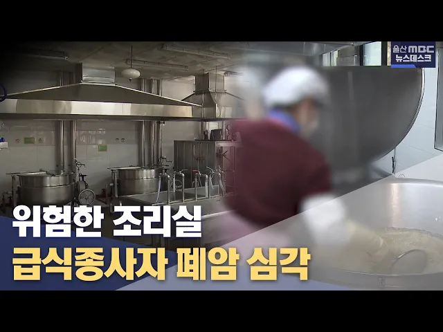 [앵커] 울산지역 학교 급식 종사자 천100여명이 올해 처음으로 폐 건강검진을 받았습니다. 중간 집계 결과 21%가 폐결절 등 이상이 있고 이 가운데 5명은 폐암이 의심된다는 진단을 받았는데요, 취재진이 추가로 확인한 결과 최종 폐암 진단을 받은 이도 있었습니다. 홍상순 기자가 취재했습니다. [리포트] 학교 급식실에서...