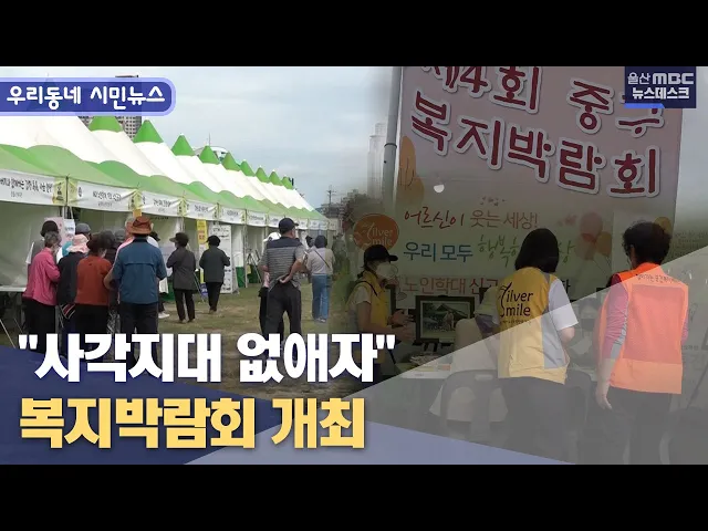 [앵커] 울산MBC와 울산시청자미디어센터가 함께 만드는 우리 동네 시민뉴스입니다. 지난 8월 경기 수원에서 세 모녀가 생활고에 시달렸지나 도움을 받지 못하고 숨진 사건 이후 각 지자체가 복지 서비스를 강화하는데 힘을쏟고 있습니다. 서선숙 시민기자가 복지박람회를 다녀왔습니다. [리포트] 울산 각 구.군에서 매년 복...