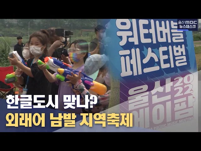 [앵커] 오늘은 한글날입니다. 울산은 외솔 최현배 선생의 고향이여서 어떤 도시보다 한글도시라는 점을 강조하고 있는데요. 하지만 정작 울산의 지역 축제를 살펴보면 꼭 필요하지 않은 외래어가 남발되고 있습니다. 이돈욱 기자입니다. [리포트] 서로에게 마음껏 물을 쏘며 시원하게 더위를 날리는 중구의 지역 축제. 이 ...
