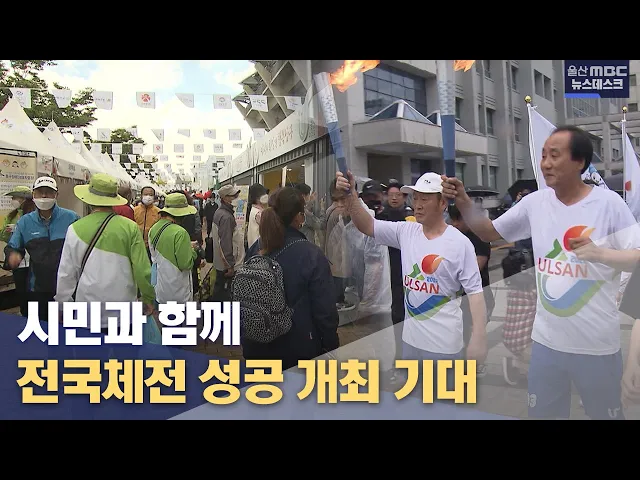 [앵커] 울산에서 17년 만에 다시 열리는 이번 전국체전은 시민들의 적극적인 참여와 지역 기업들의 지원이 잇따르면서 성공적인 대회 개최에 대한 기대감을 높이고 있습니다. 계속해서 최지호 기자입니다. [리포트]비가 내리는 궂은 날씨 속에서도 힘차게 타오른 전국체전 성화를 옮긴 주역은 611명의 시민입니다. 성황 봉...