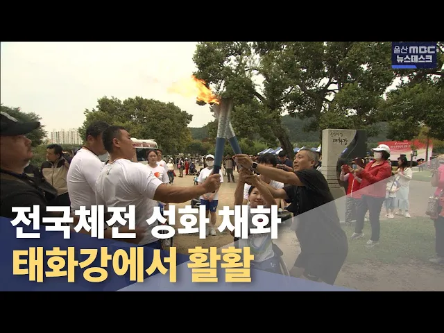 [앵커] 전국체전과 장애인체전의 성공을 기원하는 횃불이 오늘(10/3) 태화강 국가정원과 강화도 마니산에서 채화됐습니다. 성화는 내일(10/4) 시청에서 합쳐진 뒤 성화 봉송 주자 600여 명의 손을 거치며 대회 분위기를 고조시키는 역할을 할 전망입니다. 최지호 기자입니다. [리포트]선녀 옷을 일곱명이 웅장한 음악에 맞...