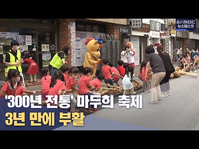 [앵커] 오늘 뉴스데스크는 마두희 축제가 열리고 있는 중구 원도심에서 진행됩니다. 큰줄당기기 마두희는 그동안 코로나19로 번번히 무산됐다가 3년 만에 부활했습니다. 중구가 세계적인 문화관광도시로 성장하기 위해서 3백년 이상의 전통을 가진 마두희 역할이 아주 중요할 것으로 보입니다. 정인곤 기자가 보도합니다. [...